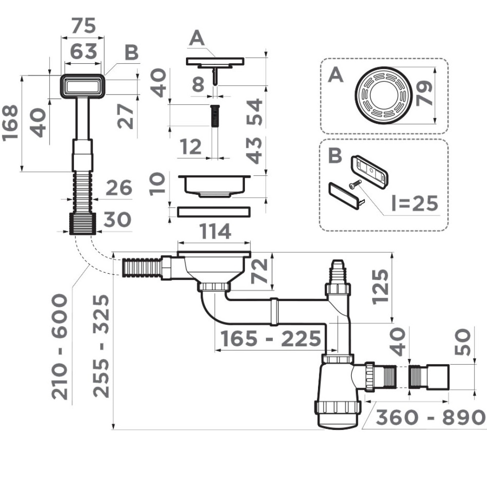 Арматура для одночашевых моек с прямоугольным переливом. Подходит для моек Omoikiri Ashi, Haruna, Sagami, Taki, Tadzava, Omi, Kasen, Akisame, Amadare, Kata, Mizu.