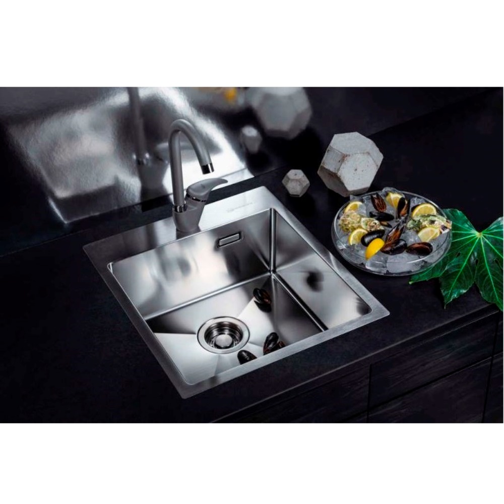 Мойка кухонная Omoikiri из коллекции Akisame 46-GB имеет размеры 460х510 мм., изготовлена из нержавеющей стали. Форма — прямоугольная, одна чаша с отверстием для смесителя. Сифон в комплекте. Ширина чаши 41. Врезной монтаж.
