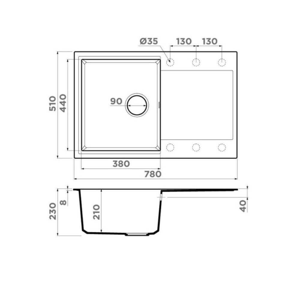 Мойка кухонная Omoikiri из коллекции Daisen 78T-SA имеет размеры 780х510 мм., изготовлена из искусственного гранита. Форма — прямоугольная, одна чаша без отверстия для смесителя. Сифон в комплекте. Ширина чаши 38. Врезной монтаж. Имеется крыло.