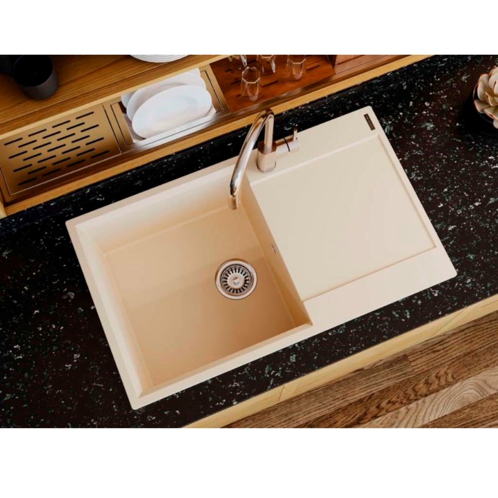 Мойка кухонная Omoikiri из коллекции Daisen 86-SA имеет размеры 860х510 мм., изготовлена из искусственного гранита. Форма — прямоугольная, одна чаша без отверстия для смесителя. Сифон в комплекте. Ширина чаши 44. Врезной монтаж. Имеется крыло.