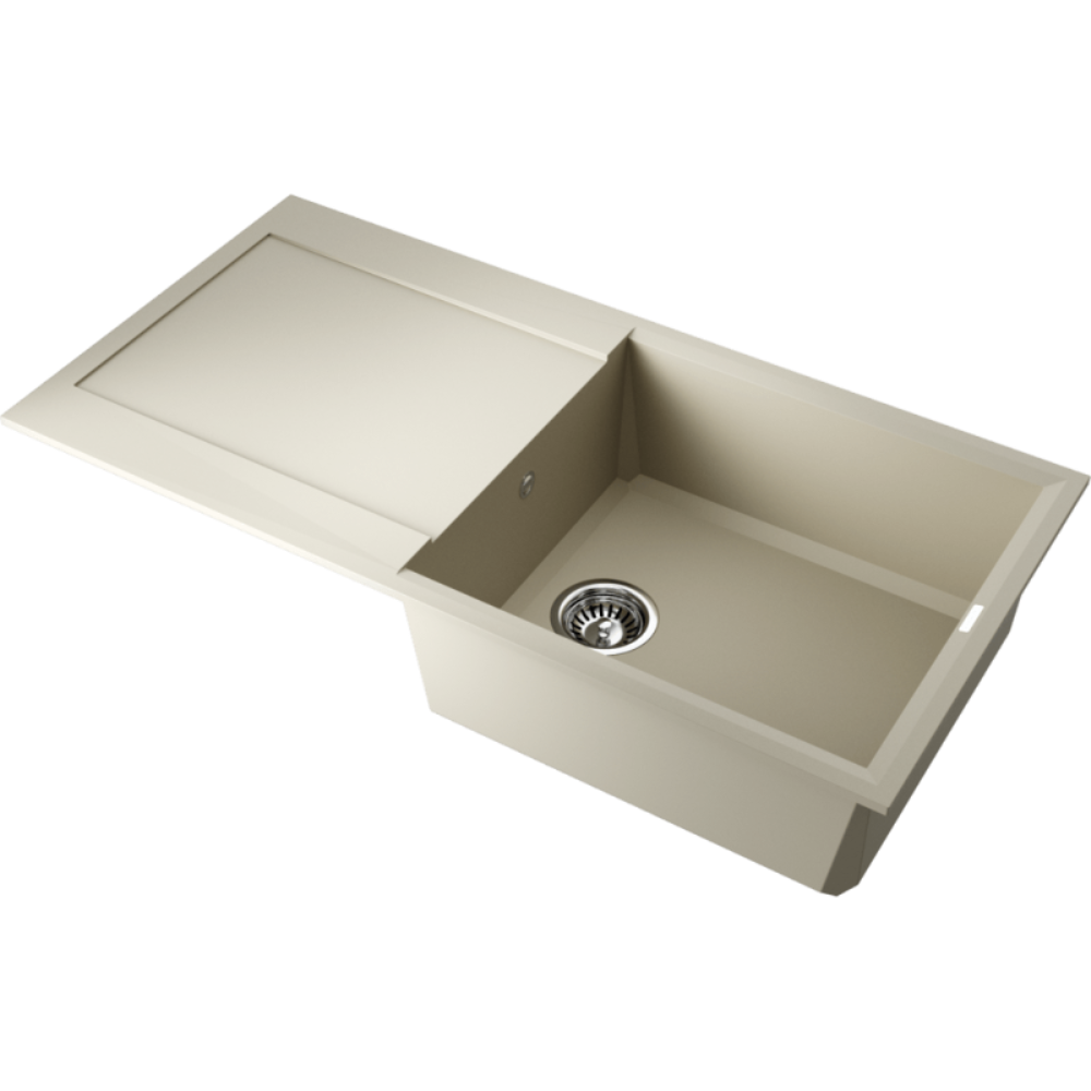 Мойка кухонная Omoikiri из коллекции Sakaime 100-BE имеет размеры 1000х500 мм., изготовлена из искусственного гранита. Форма — прямоугольная, одна чаша без отверстия для смесителя. Сифон в комплекте. Ширина чаши 47,5. Врезной монтаж. Имеется крыло.