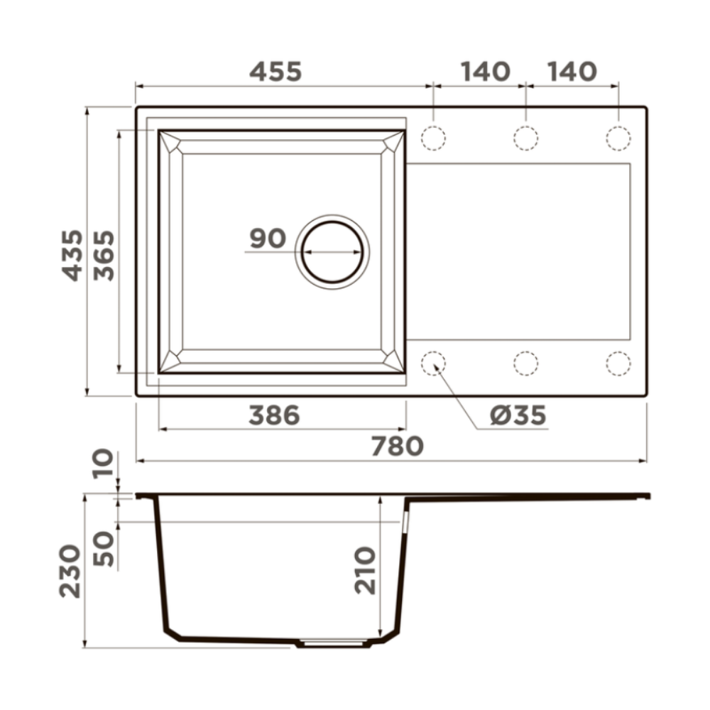 Мойка кухонная Omoikiri из коллекции Sakaime 78-WH имеет размеры 780х435 мм., изготовлена из искусственного гранита. Форма — прямоугольная, одна чаша без отверстия для смесителя. Сифон в комплекте. Ширина чаши 38,6. Врезной монтаж. Имеется крыло.