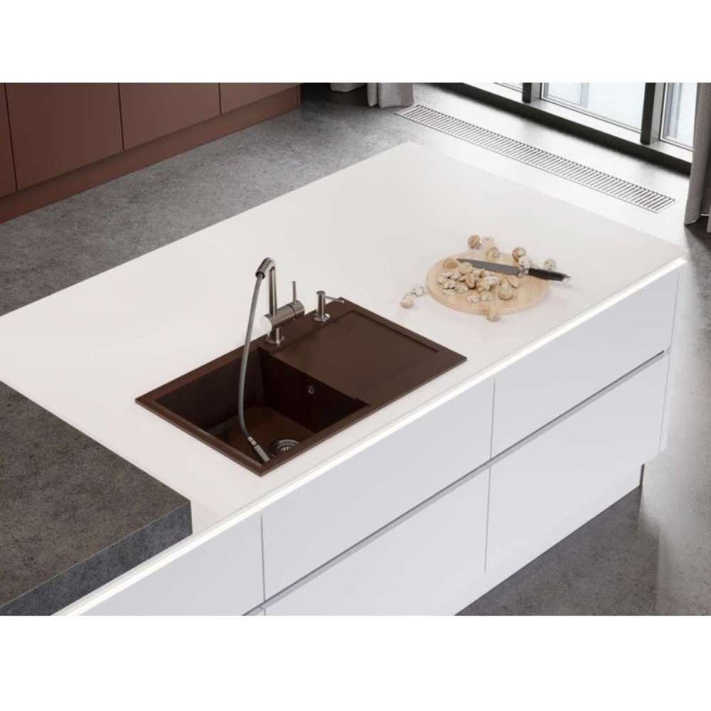 Мойка кухонная Omoikiri из коллекции Sakaime 79-WH имеет размеры 790х500 мм., изготовлена из искусственного гранита. Форма — прямоугольная, одна чаша без отверстия для смесителя. Сифон в комплекте. Ширина чаши 39. Врезной монтаж. Имеется крыло.