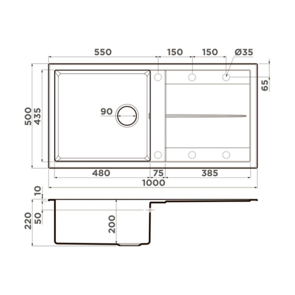 Мойка кухонная Omoikiri из коллекции Sumi 100-BE имеет размеры 1000х500 мм., изготовлена из искусственного гранита. Форма — прямоугольная, одна чаша без отверстия для смесителя. Сифон в комплекте. Ширина чаши 48. Врезной монтаж. Имеется крыло.