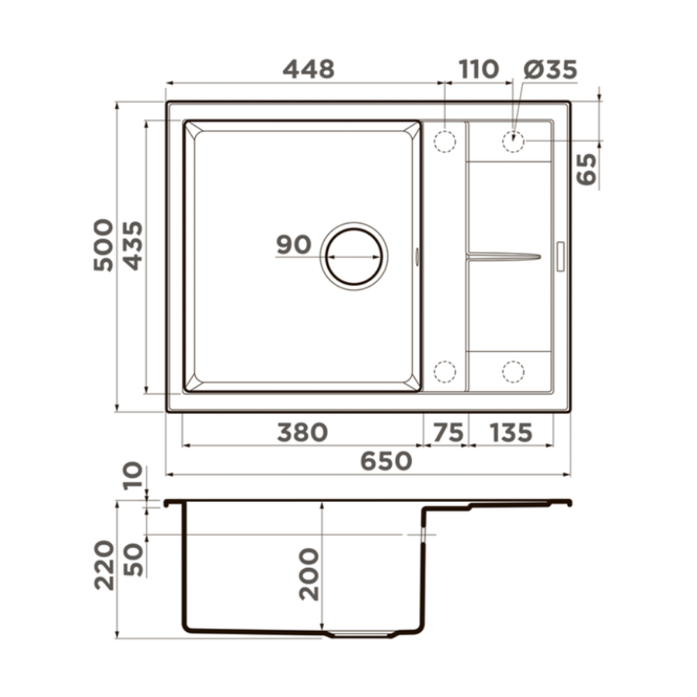 Мойка кухонная Omoikiri из коллекции Sumi 65-BL имеет размеры 650х500 мм., изготовлена из искусственного гранита. Форма — прямоугольная, одна чаша без отверстия для смесителя. Сифон в комплекте. Ширина чаши 38. Врезной монтаж. Имеется крыло.