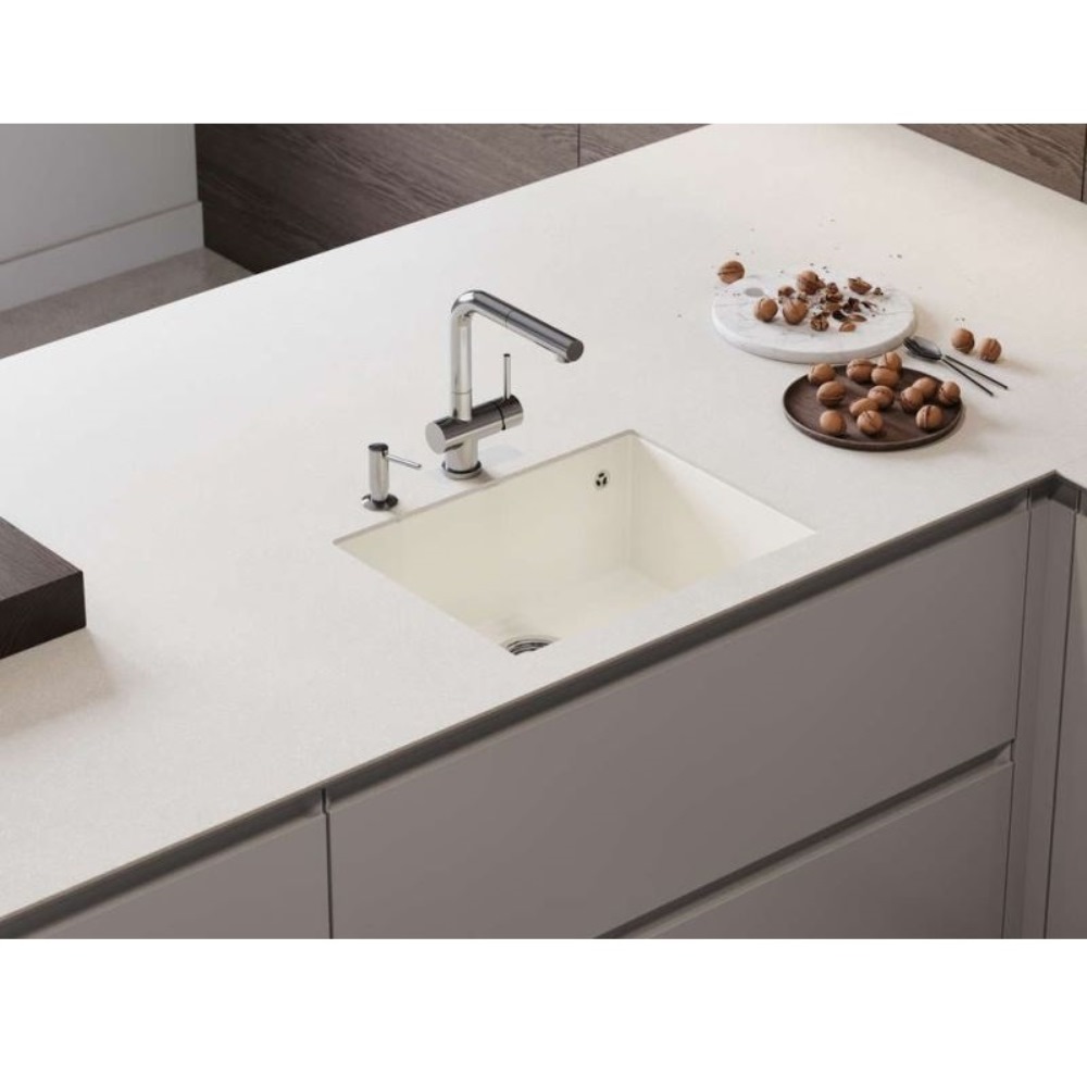 Мойка кухонная Omoikiri из коллекции Tedori 54-U-WH имеет размеры 550х420 мм., изготовлена из искусственного гранита. Форма — прямоугольная, одна чаша без отверстия для смесителя. Сифон в комплекте. Ширина чаши 51. Подстольный монтаж.