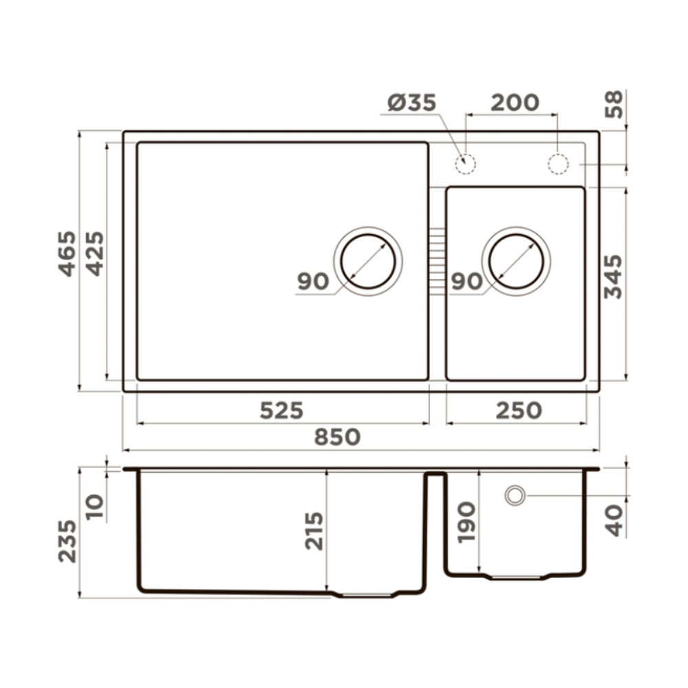 Мойка кухонная Omoikiri из коллекции Tedori 85-2-U-SA имеет размеры 850х465 мм., изготовлена из искусственного гранита. Форма — прямоугольная, одна чаша без отверстия для смесителя. Сифон в комплекте. Ширина чаши 52,5. Подстольный монтаж. Имеется дополнительная чаша.