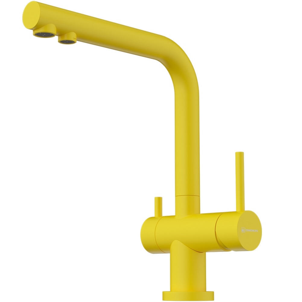 Смеситель для кухни Omoikiri Nagano с подключением фильтра оснащен рычажным управлением для регулировки температуры и напора воды. Горизонтальный монтаж на 1 отверстие. Поворотный излив 176 мм.