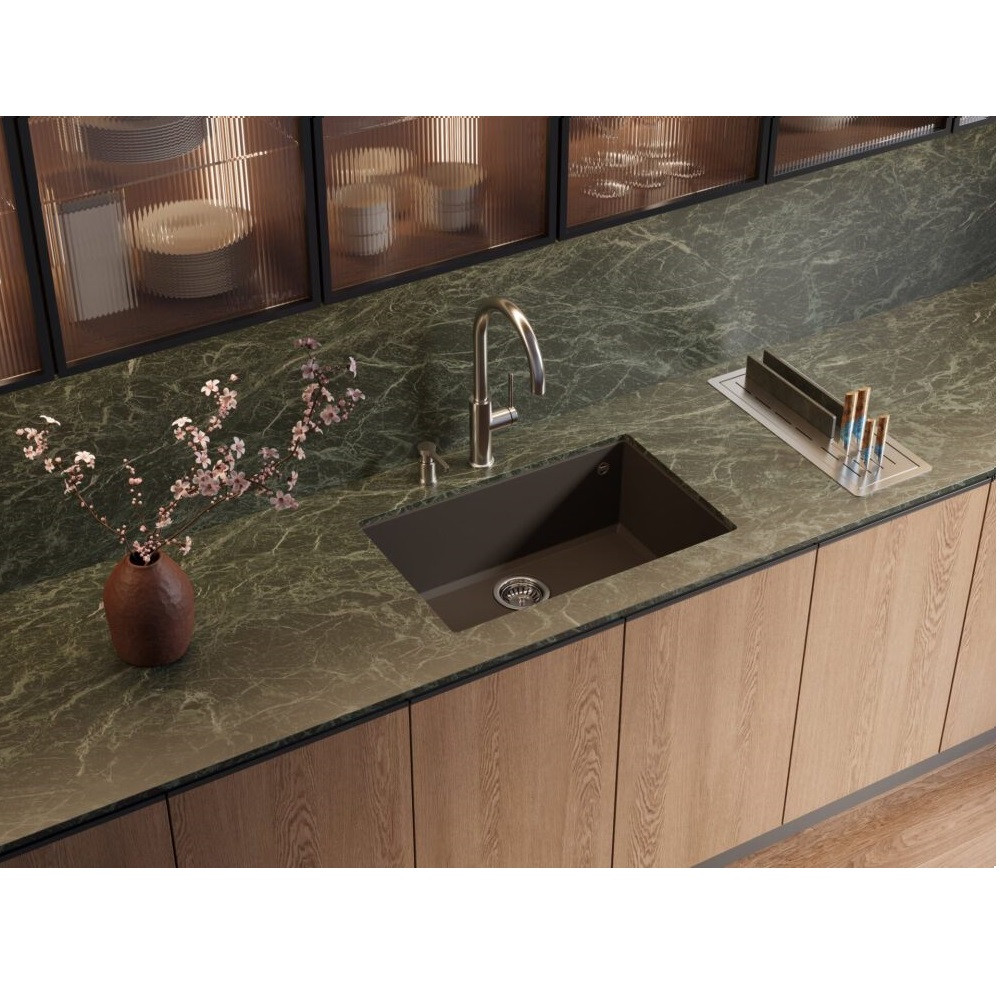 Смеситель для кухни Omoikiri Okawa 2 Plus с подключением фильтра оснащен рычажным управлением для регулировки температуры и напора воды. Горизонтальный монтаж на 1 отверстие. Поворотный излив 215 мм.