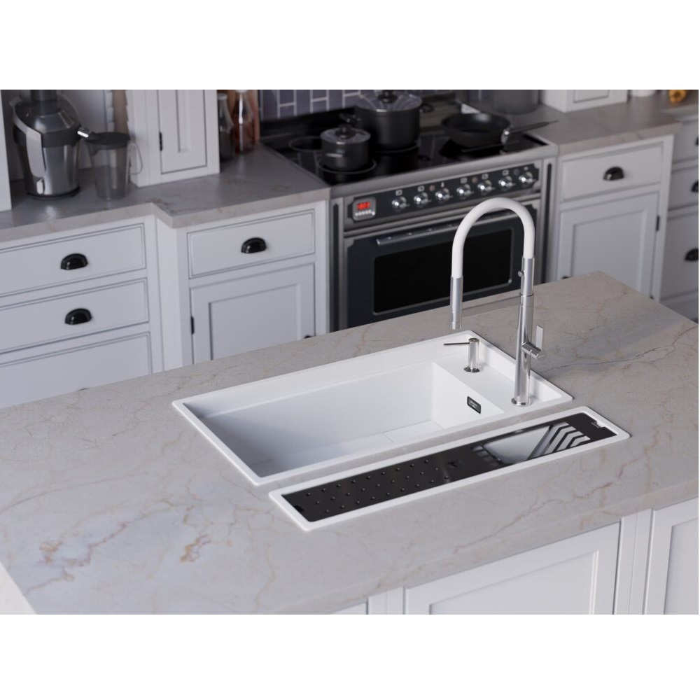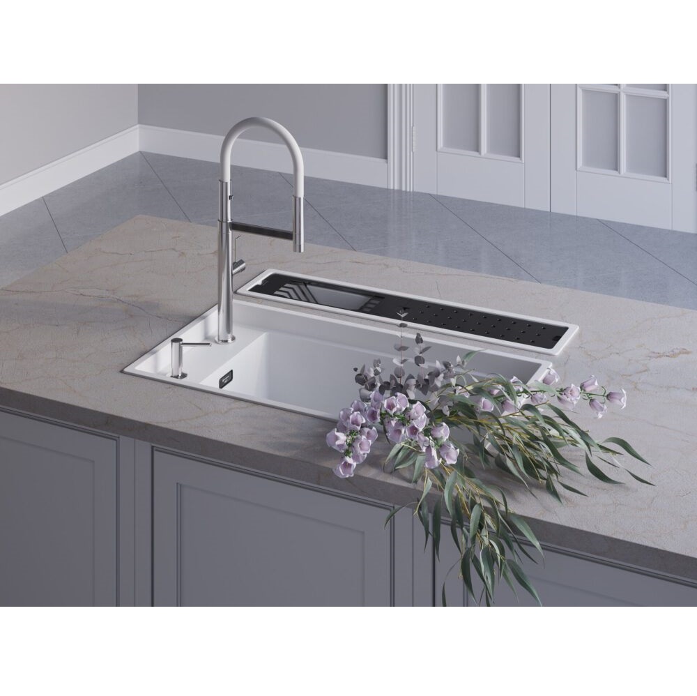 Смеситель для кухни Omoikiri Osaka оснащен рычажным управлением для регулировки температуры и напора воды. Горизонтальный монтаж на 1 отверстие. Гибкий излив 220 мм.