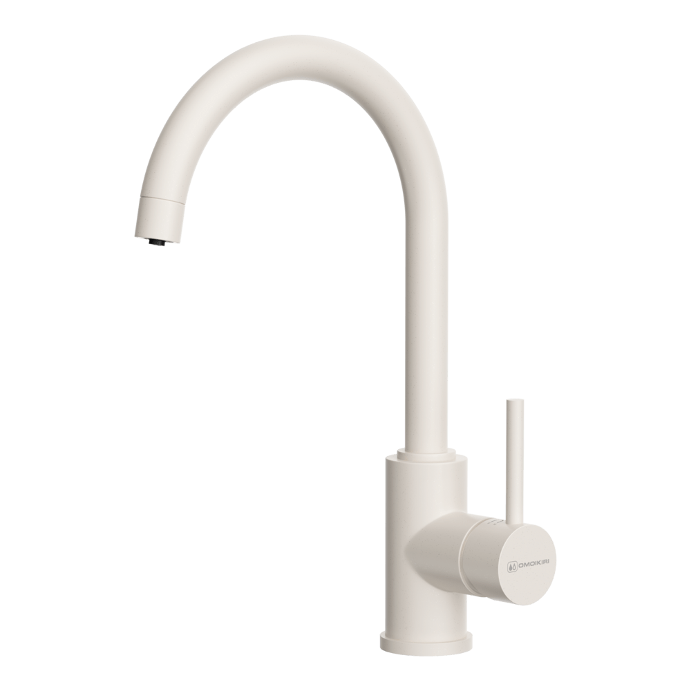 Смеситель для кухни Omoikiri Shinagawa 2 Plus с подключением фильтра оснащен рычажным управлением для регулировки температуры и напора воды. Горизонтальный монтаж на 1 отверстие. Поворотный излив 179 мм.