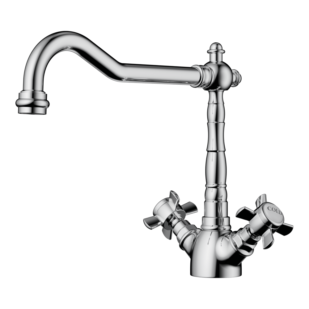 Смеситель для кухни Omoikiri Tokigawa оснащен рычажным управлением для регулировки температуры и напора воды. Горизонтальный монтаж на 1 отверстие. Поворотный излив 238 мм.