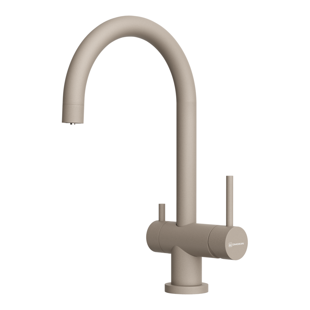 Смеситель для кухни Omoikiri Yamada-P с подключением фильтра оснащен рычажным управлением для регулировки температуры и напора воды. Горизонтальный монтаж на 1 отверстие. Поворотный излив 204 мм.